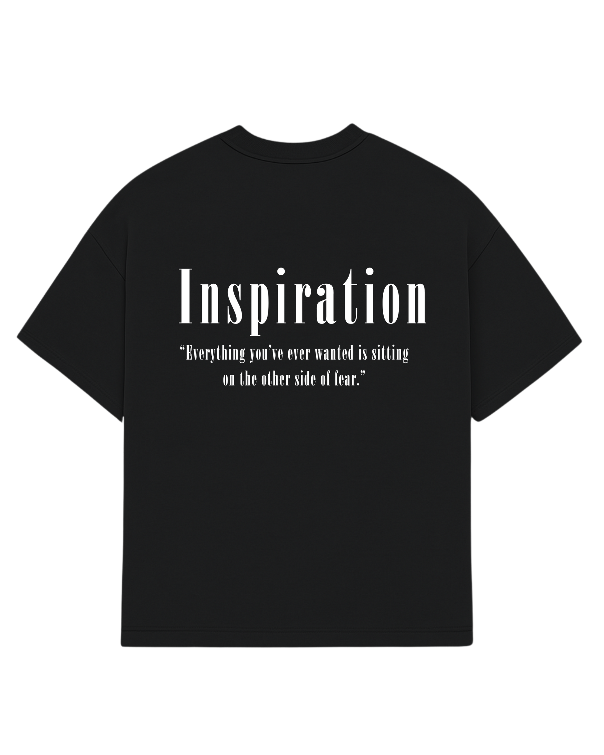 This tee isn't just fabric – it's your daily reminder to push past fear and chase your vision. With bold typography and minimalist design, the Inspiration Tee is made for creators, dreamers, and those who dare.